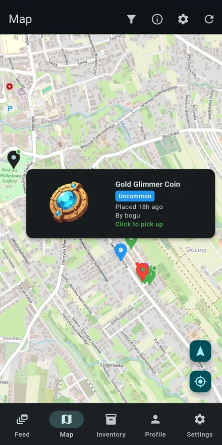 Get notified when someone hides a new item near you. Spot it on the map, grab your coat, and go claim it before anyone else does.